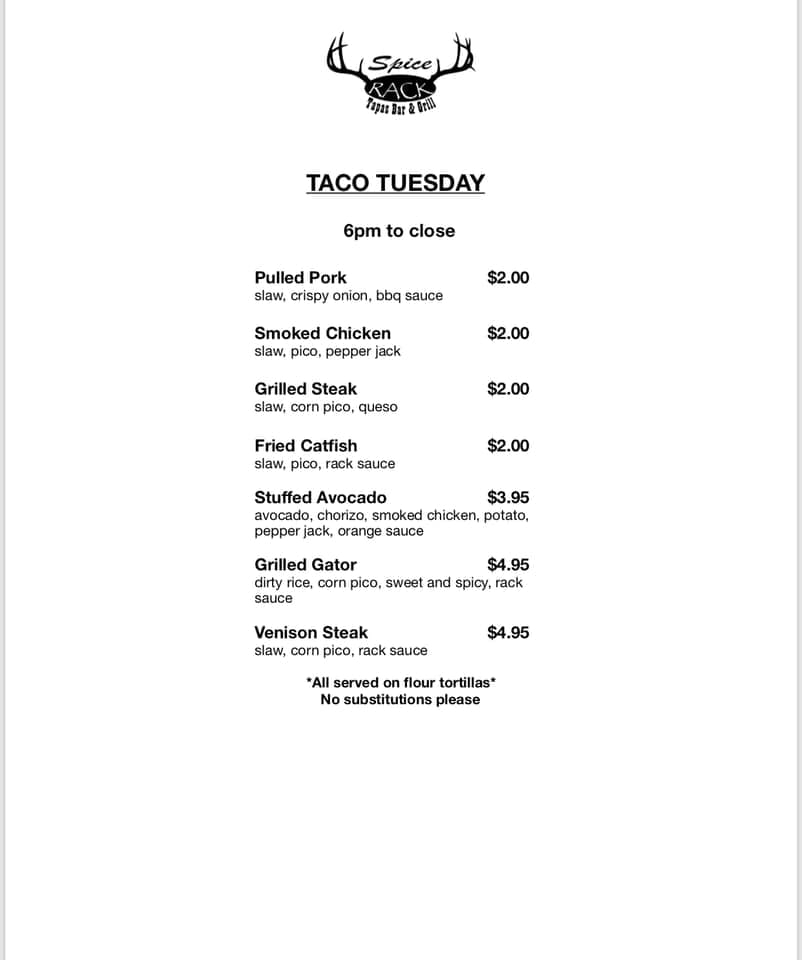 Spice Rack will also have Taco Tuesdays from 6 p.m.-close with with discounted prices on their house tacos and specialty tacos that will only be available on Tuesdays.